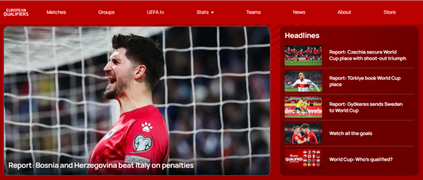 欧足联官网对4场附加赛决赛的报说念截图。