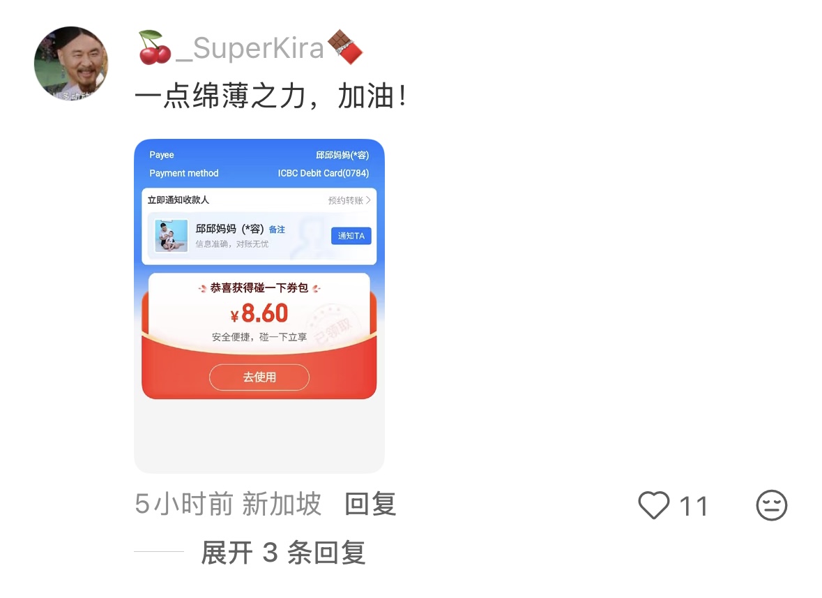 一些网友奏凯转去了我方的少许情意